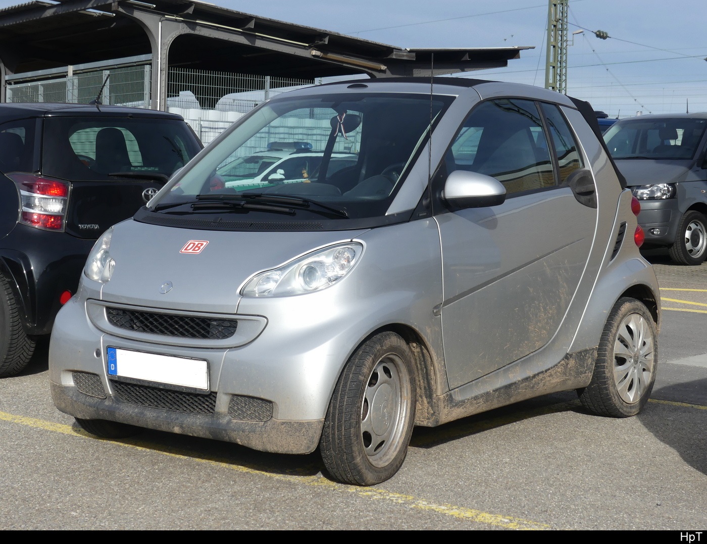 Grauer Smart abgestellt auf einem Parkplatz irgendwo in der Stadt Basel am 04.02.2024
