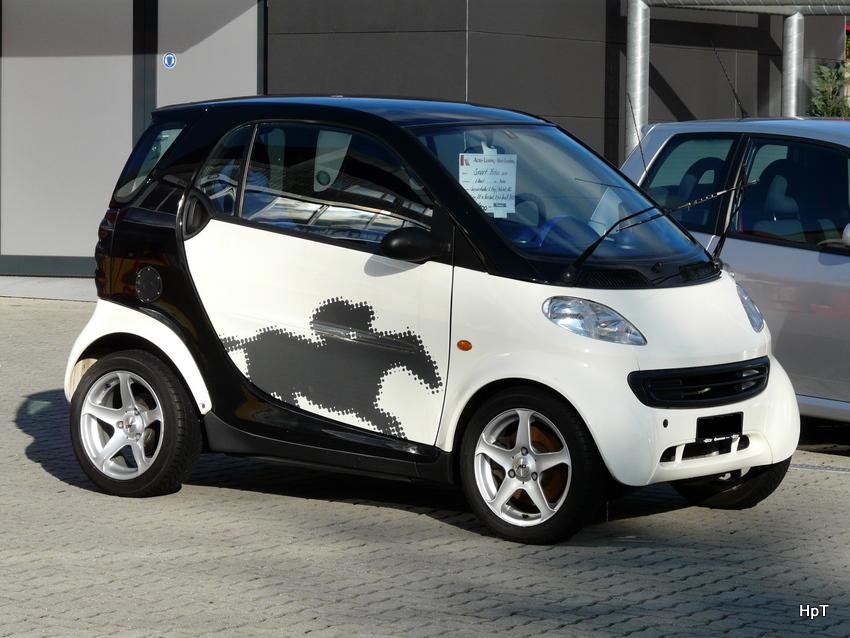 Schwarz-Weisser Smart mit Reitermotiv in Bützberg am 02.01.2010