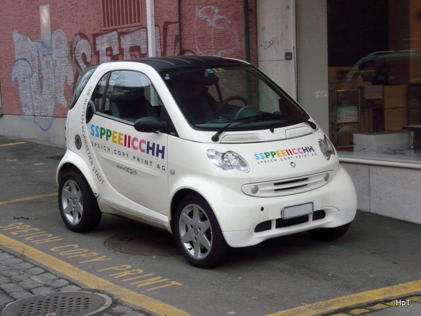 Weisser Werbe Smart in der Stadt Zürich am 16.01.2010