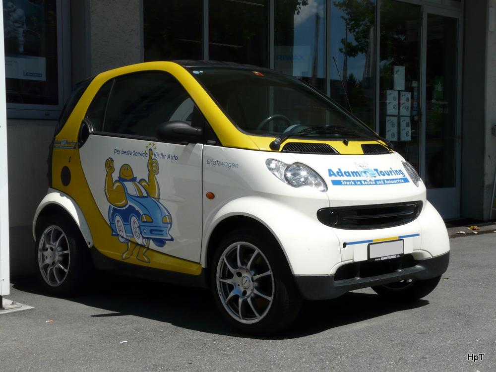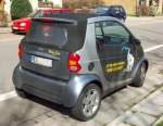 Grauer Smart mit Werbung in Yverdon am 21.05.2025