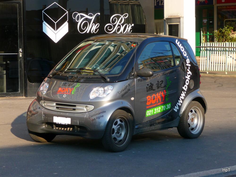 Grauer Smart mit Werbung in Lausanne am 22.01.2011