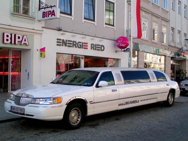 Stretchlimosine  Lincoln   steht am Hauptplatz in Ried i.I.; 090425