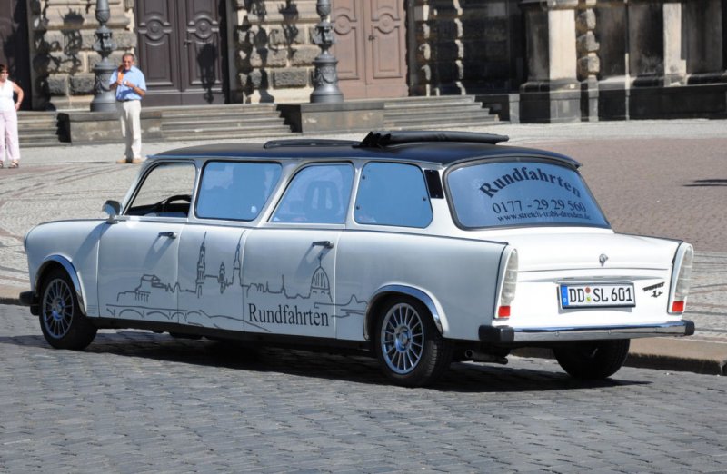 IFA Sachsenring Trabant 601 Stretch-Limousine. Mit diesem auffälligen Auto werden in Dresden Stadtrundfahrten angeboten. Dresden im Mai 2024. Michael H.