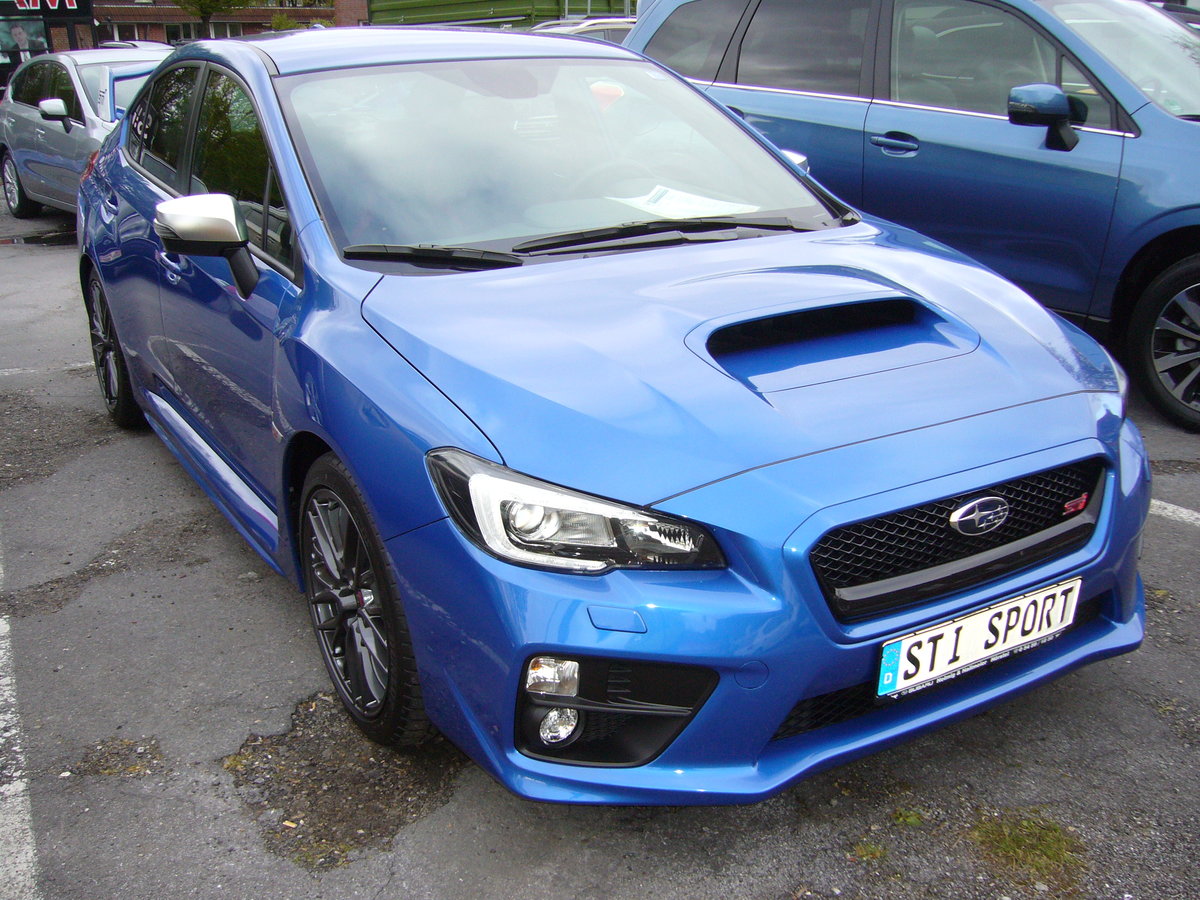 Subaru WRX STI 2.5 des Modelljahres 2017. Die Basis dieses Sportwagens ist der bereits 1992 vorgestellte Impreza. Dieser wurde über die Jahre mehrfach modernisiert und hat sich als erfolgreicher Rallyewagen einen Namen gemacht. Der 4-Zylinderboxermotor aus Leichtmetall hat einen Hubraum von 2457 cm³ und leistet, zusätzlich beatmet durch einen Turbolader 300 PS. Ibbenbüren brummt, am 23.04.2017.