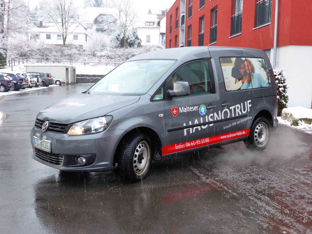 VW Caddy vom "Malteser Hausnotruf" unterwegs in 36088 Hünfeld, Januar 2015