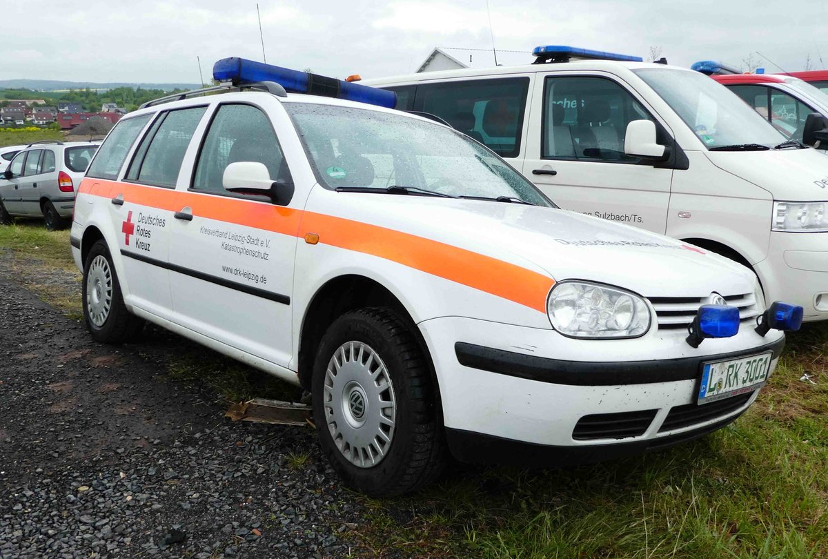 =VW Golf III Variant des DRK KV LEIPZIG, gesehen auf dem Parkplatz der RettMobil 2017 in Fulda - Mai 2017