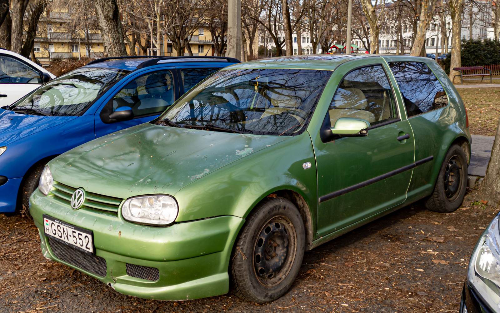Grüner VW Golf IV mit etwas optischem Tuning. Foto: Februar, 2024.