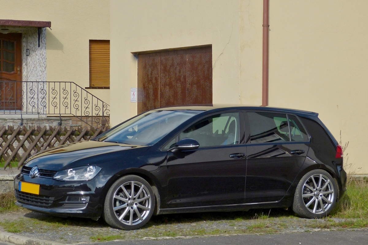 VW Golf VII Variant in Sunset Red Metallic. Foto: Juli, 2024.