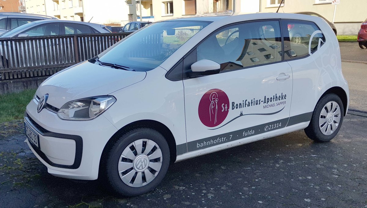 =VW UP der Bonifatius-Apotheke steht im November 2019 in Petersberg