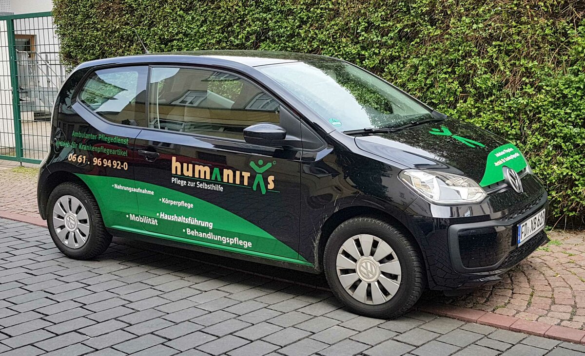 =VW UP des Pflegedienstes HUMANITAS steht im Juli 2021 in Hünfeld