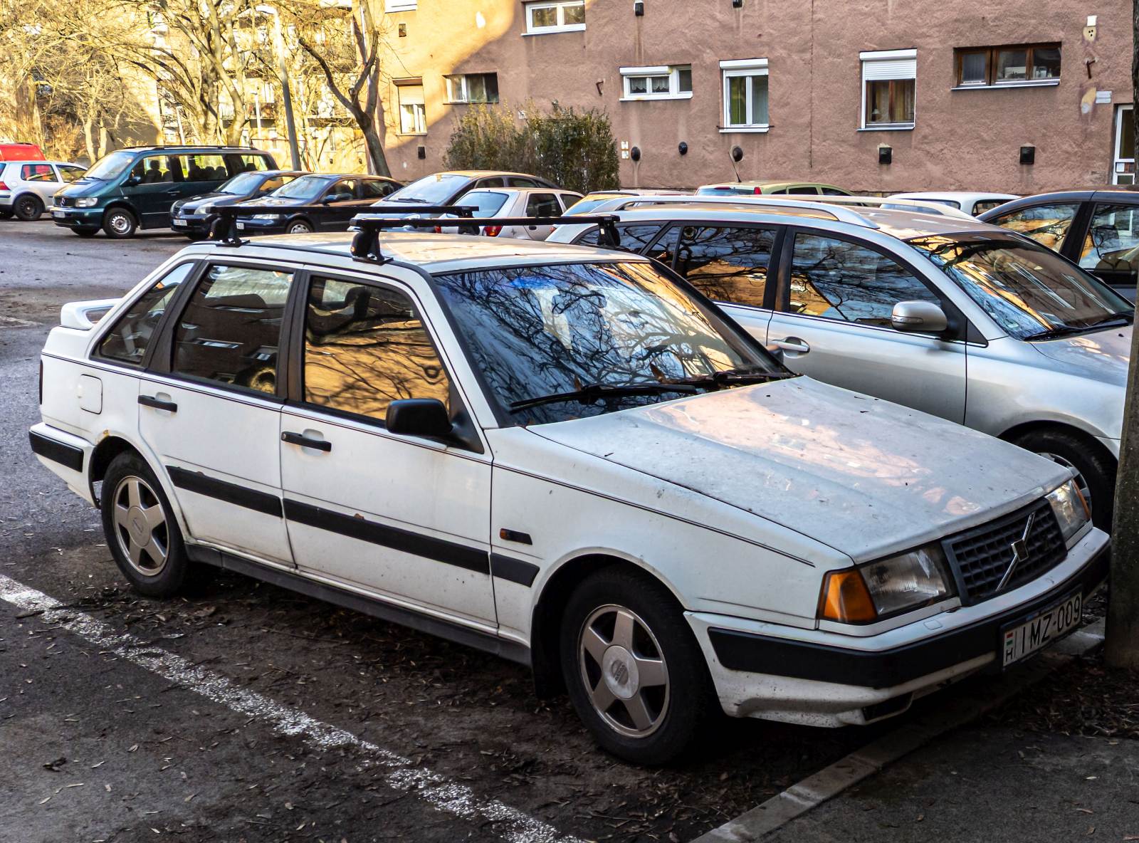 Heckansicht eines Volvo 440. Der Volvo 440 kam 1988 auf den Markt und wurde bis 1994 im niederländischen Volvo-Werk produziert. Das Modell war mit etlichen Benzinmotoren, sowie in einer Dieselversion lieferbar. Der abgelichtete Volvo 440 stammt aus dem Modelljahr 1994 und ist mit dem zweitstärksten, damals lieferbaren Motor ausgerüstet. Dieser Vierzylinderreihenmotor mit Einspritztechnik hat einen Hubraum von 1794 cm³ und leistet 90 PS. Die Höchstgeschwindigkeit wurde mit 175 km/h angegeben. Mülheim an der Ruhr am 31.05.2020