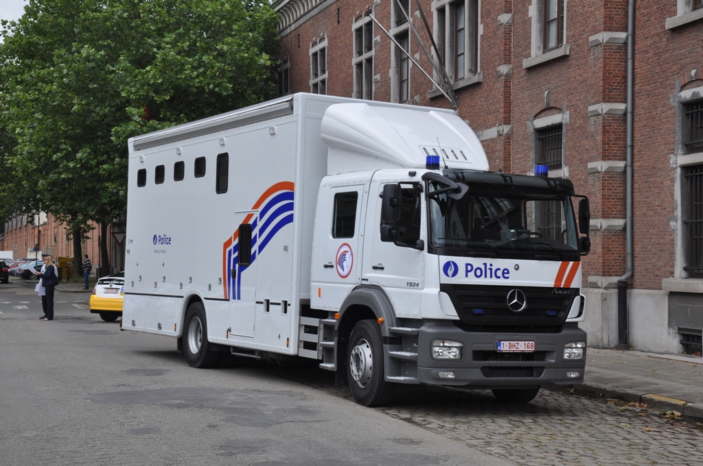 Pferdetransporter Mercedes-Benz Axor der Federale Politie, Aufnahme am 21.07.2012 in Brussel