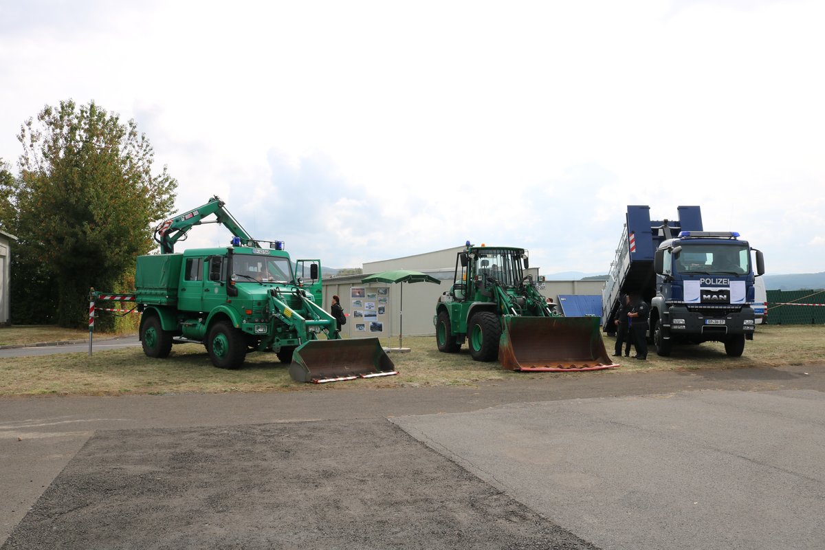 Bundespolizei Mercedes Benz Unimog U2150, Radlader und MAN TGS WLF am 08.09.19 beim Tag der offenen Tür in Hünfeld