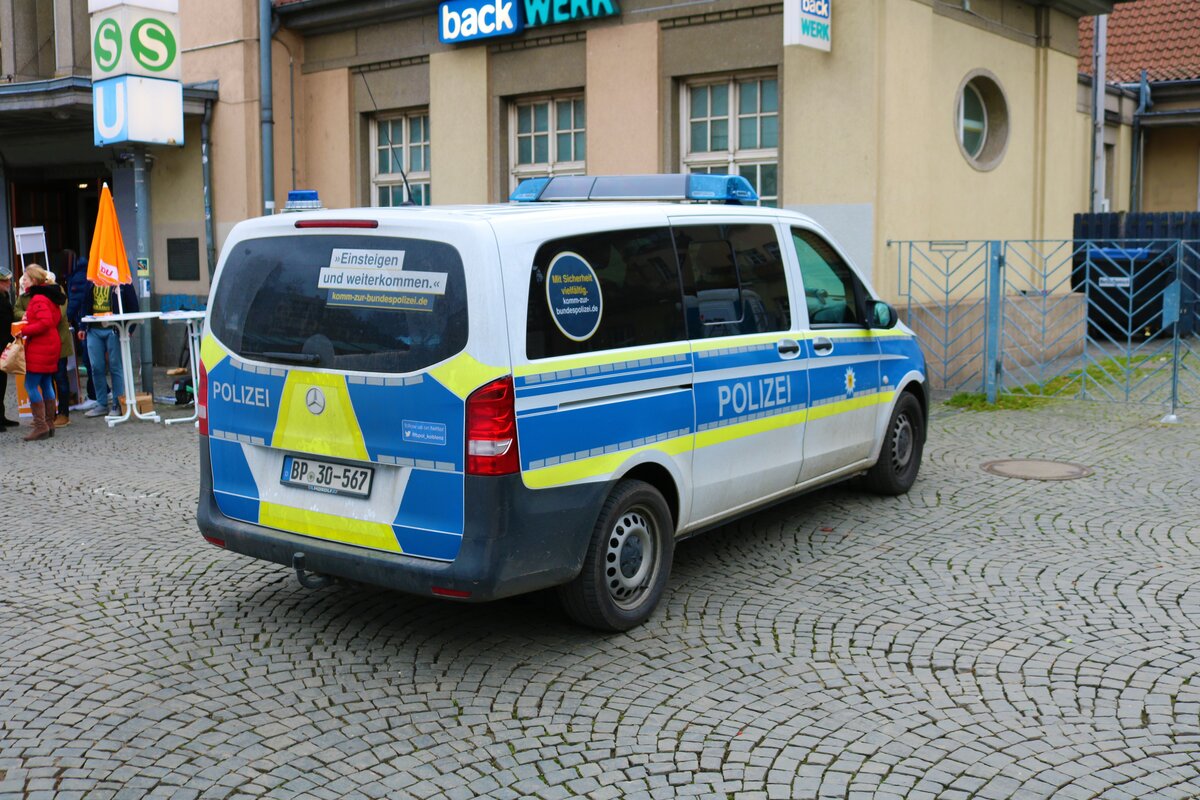 MB Sprinter der Bundespolizei steht an der Klausmarbacher Brücke, April 2012