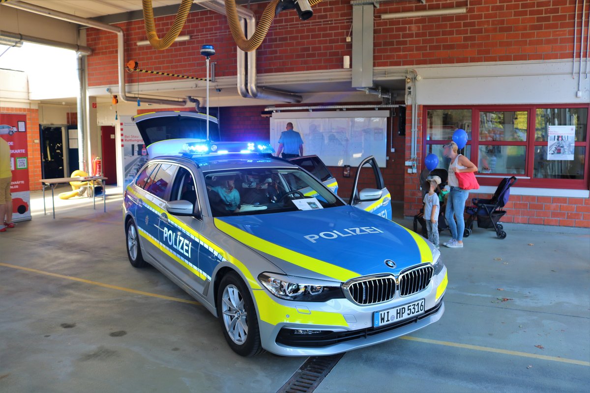 Nagelneuer BMW 5er FustW der Autobahnpolizei Hessen am 08.08.18 beim Tag der Offenen Tür der Feuerwehr Neu-Isenburg. Der wagen ist ein Tag zuvor in Dienst gestellt worden