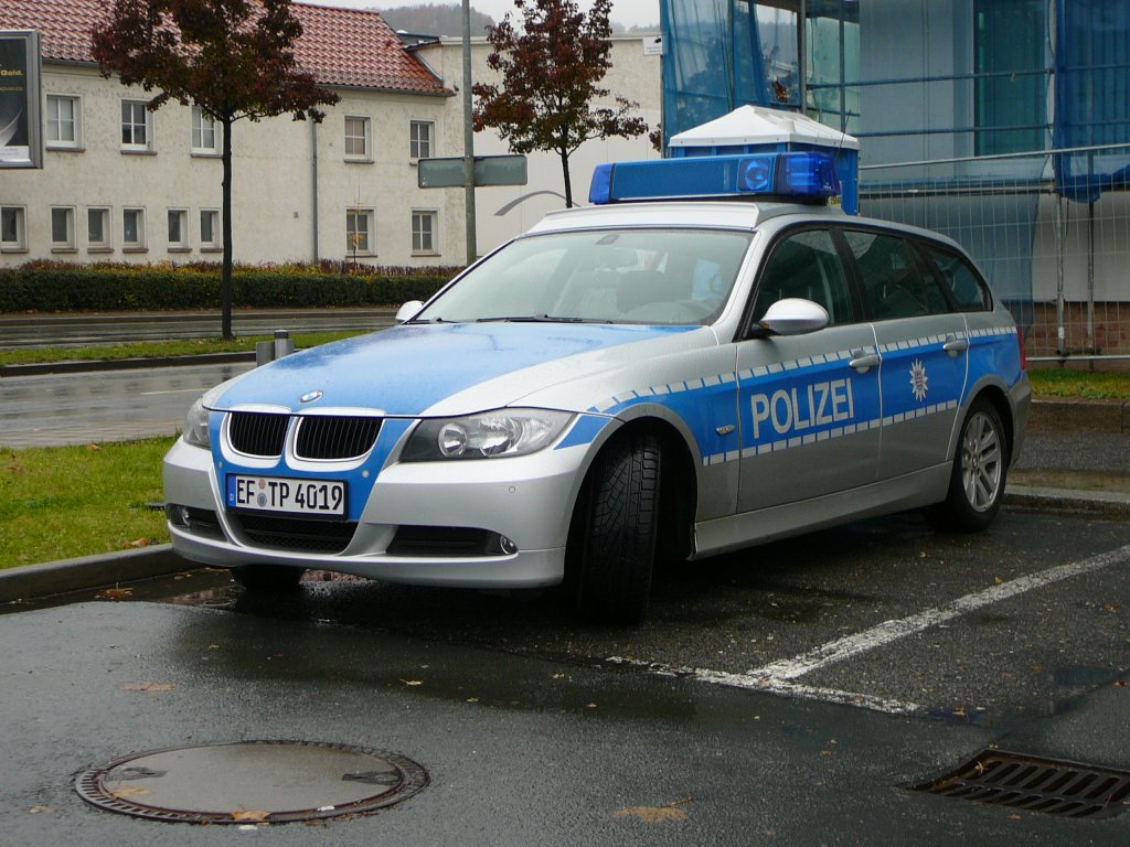 BMW als Dienstfahrzeug der Thüringer Polizei abgestellt vor der Polizeiinspektion Jena am 04.11.2009