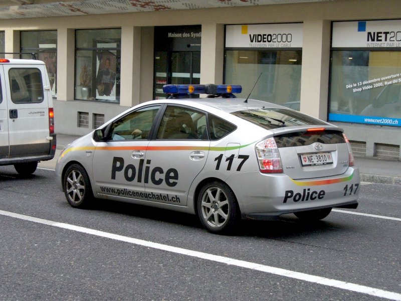 Toyota Polizeiauto der Stadtpolizei von Neuenburg unterwegs in Neuenburg am 03.1.2008