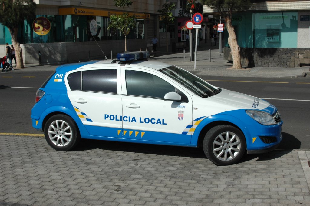 Ein Opel Corsa bei der spanischen Policia Locala als Streifenwagen in Arrecife unterwegs, und sofort am 12. 12. 2010 fotografiert.