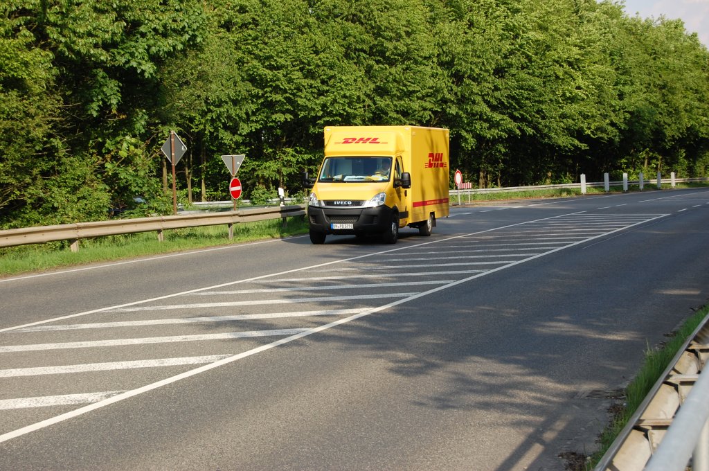 DHL IVECO Transporter ist so eben von der A44 gekommen um in das Postlager Güdderath zu fahren. 18.5.2010