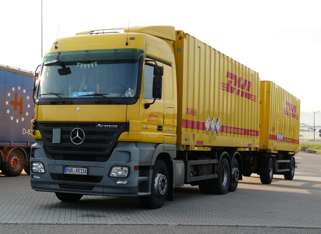 MB Actros MP2 2541 Hängerzug mit Wechselbrücken von DHL auf dem Rasthof Wörnitz, 17.05.2012