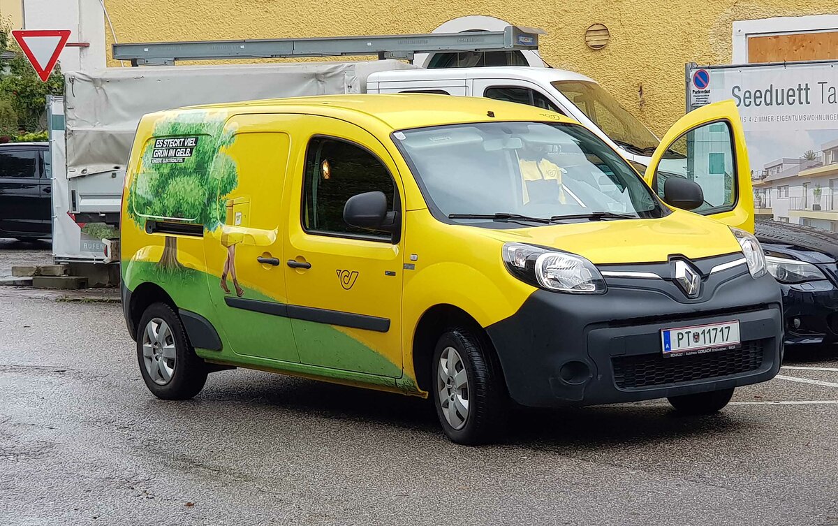 Seit kurzem ist die luxemburgische Post in einigen Städchen fast lautlos unterwegs, hier mit einem Renault Kangoo, gesehen am 16.07.2013