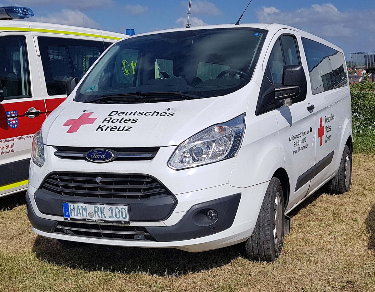 =Ford Transit Custom vom BRK steht auf dem Parkgelände der Rettmobil 2024 in Fulda