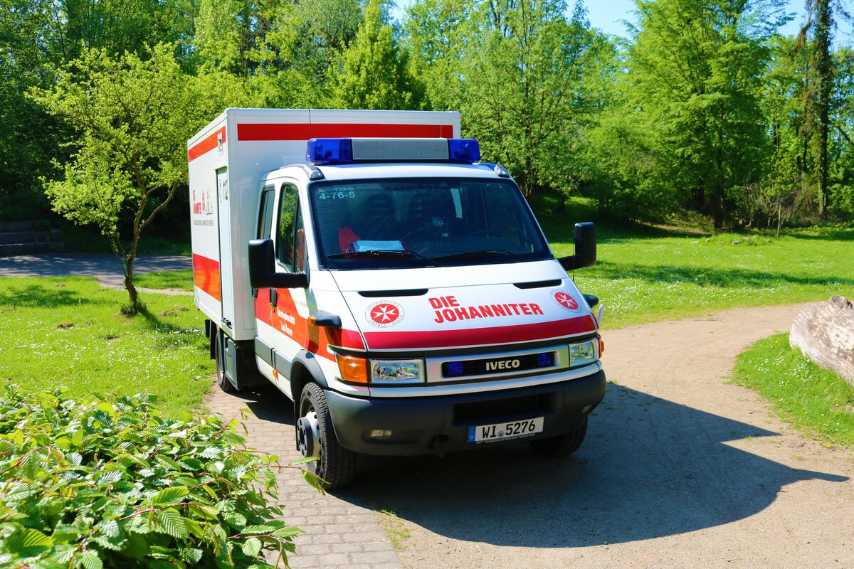 Die Johanniter IVECO Daily GW-L am 07.05.22 bei einer Waldbrandübung in Groß Zimmern