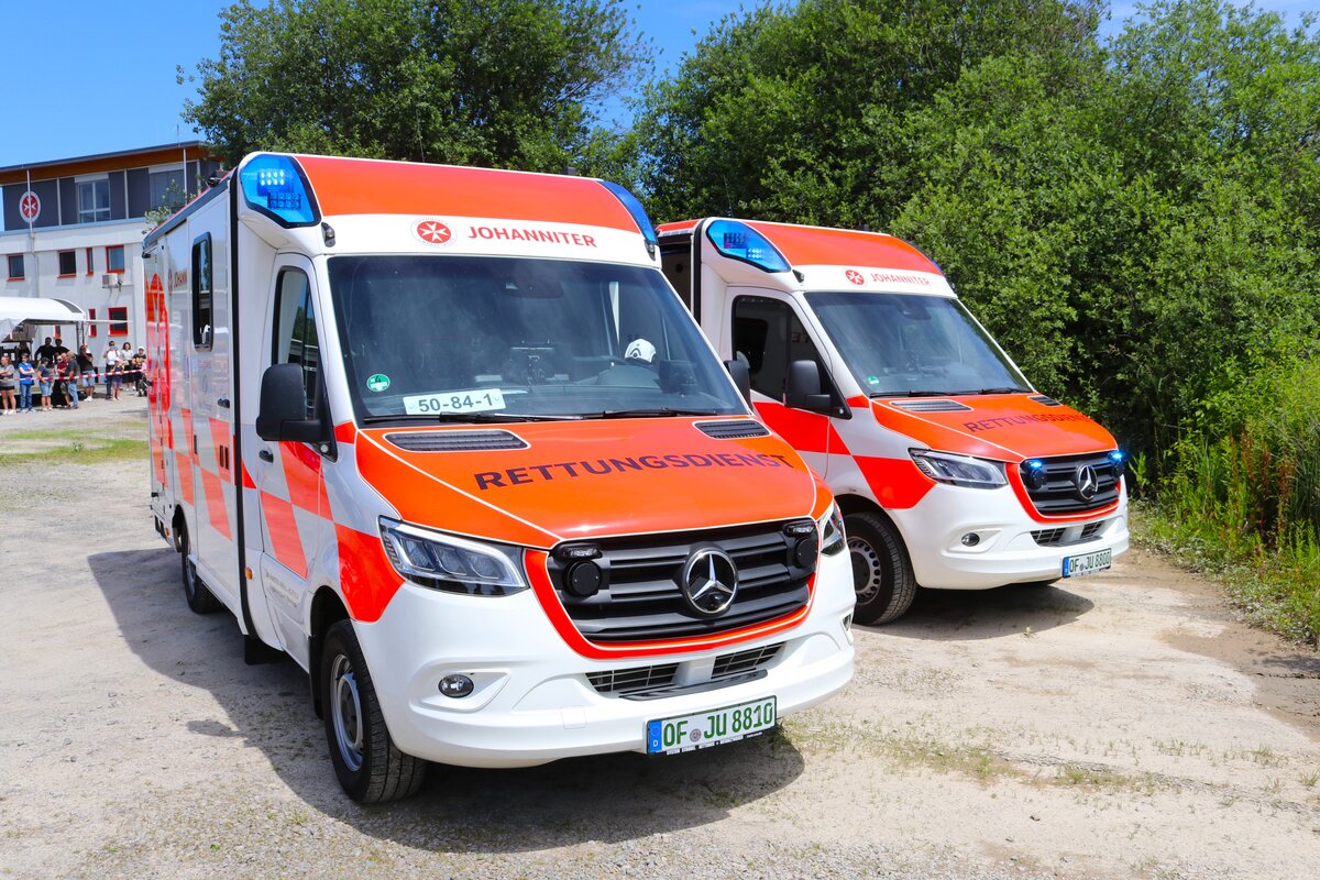 Die Johanniter Regionalverband Offenbach neue Mercedes Benz Sprinter RTW am 08.06.24 beim Tag der offenen Tür zum 50 jährigen Jubiläum
