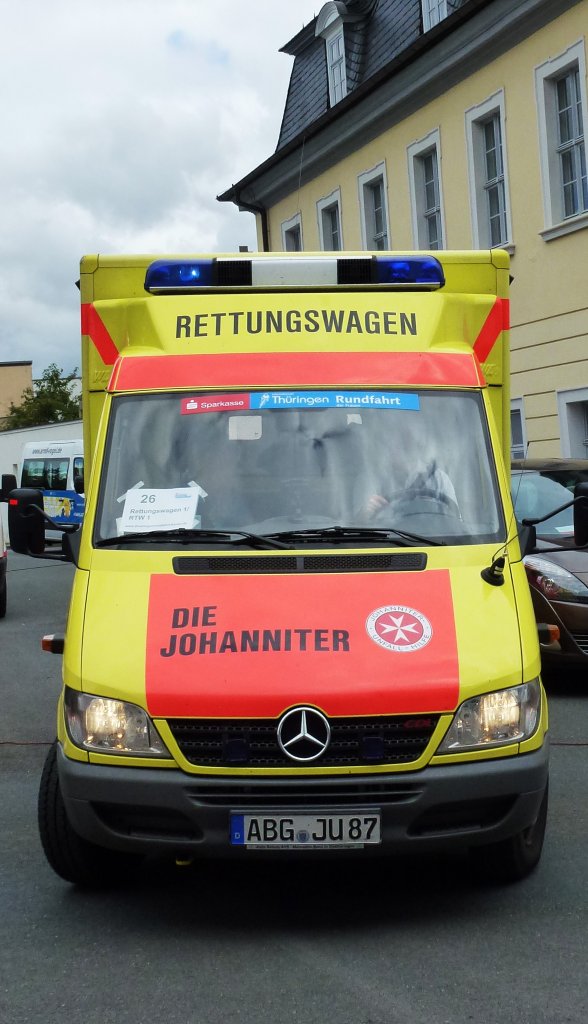 RTW Johanniter Altenburg im Einsatz der Thüringen - Rundfahrt in Zeulenroda. Foto 22.07.12