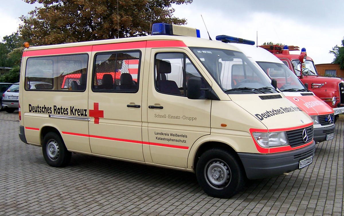 Mercedes-Benz Sprinter T1N Kleinbus des DRK - Katastrophenschutz, Landkreis Weißenfels, am 25.09.2004 zur 111-Jahrfeier der Feuerwehr in Lützen.
