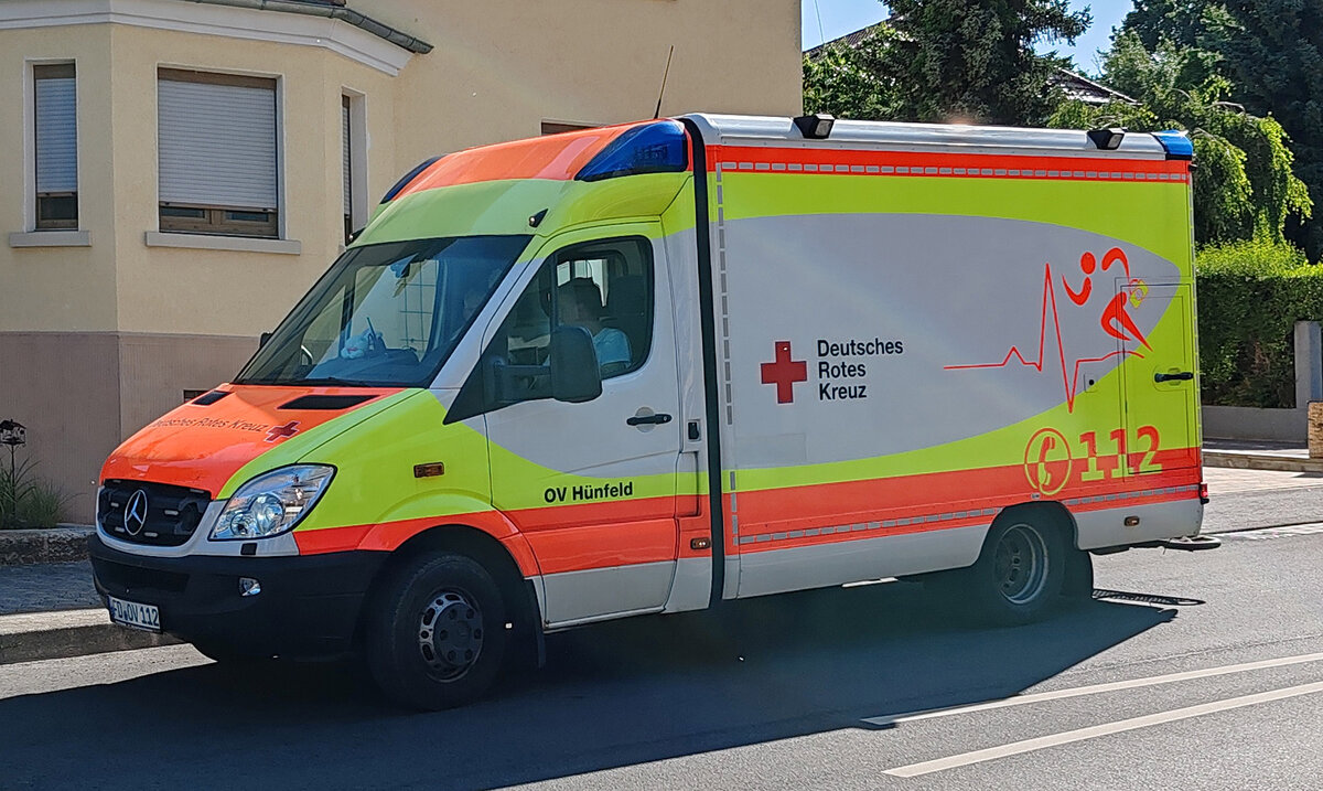 =MB Sprinter vom DRK OV HÜNFELD hat ein schattiges Plätzchen auf dem Ausstellungsgelände anl. der Feierlichkeiten  100 Jahre Feuerwehr HÜNFELD  im Juni 2025 gefunden