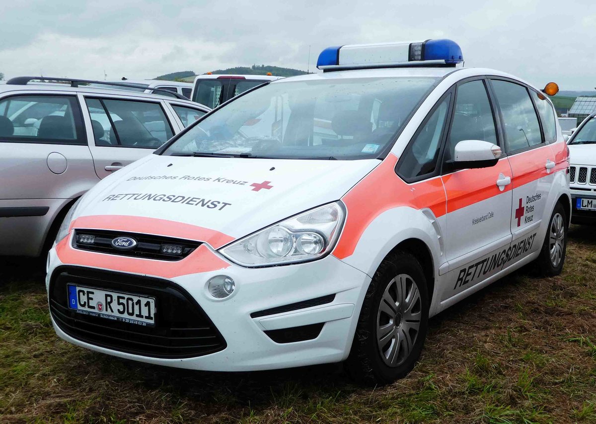 =Ford Galaxy des DRK KV CELLE, gesehen auf dem Parkplatz bei der RettMobil 2017 in Fulda - Mai 2017