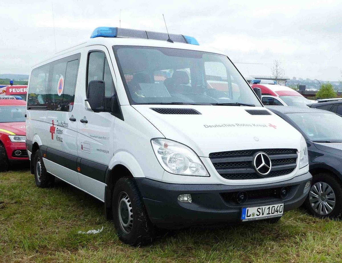 =MB Sprinter des DRK KV LEIPZIG, gesehen auf dem Parkplatz der RettMobil 2017 in Fulda - Mai 2017