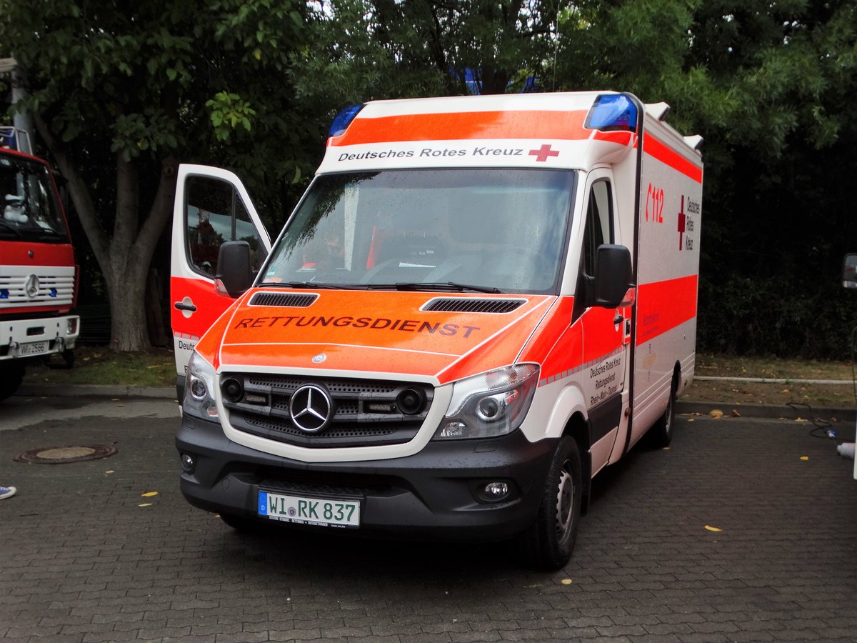 DRK Wiesbaden Mercedes Benz Sprinter RTW am 16.09.17 beim Tag der offene Tür an der Wache 2 in Mainz Kastel der BF Wiesbaden