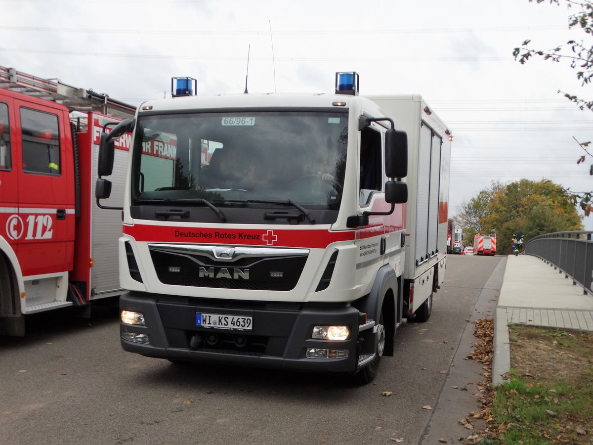 DRK Frankfurt am Main MAN TGM GW am 28.10.17 im Bereitstellungsraum in Rödelheim wegen der Herbstabschlussübung der Jugendfeuerwehr