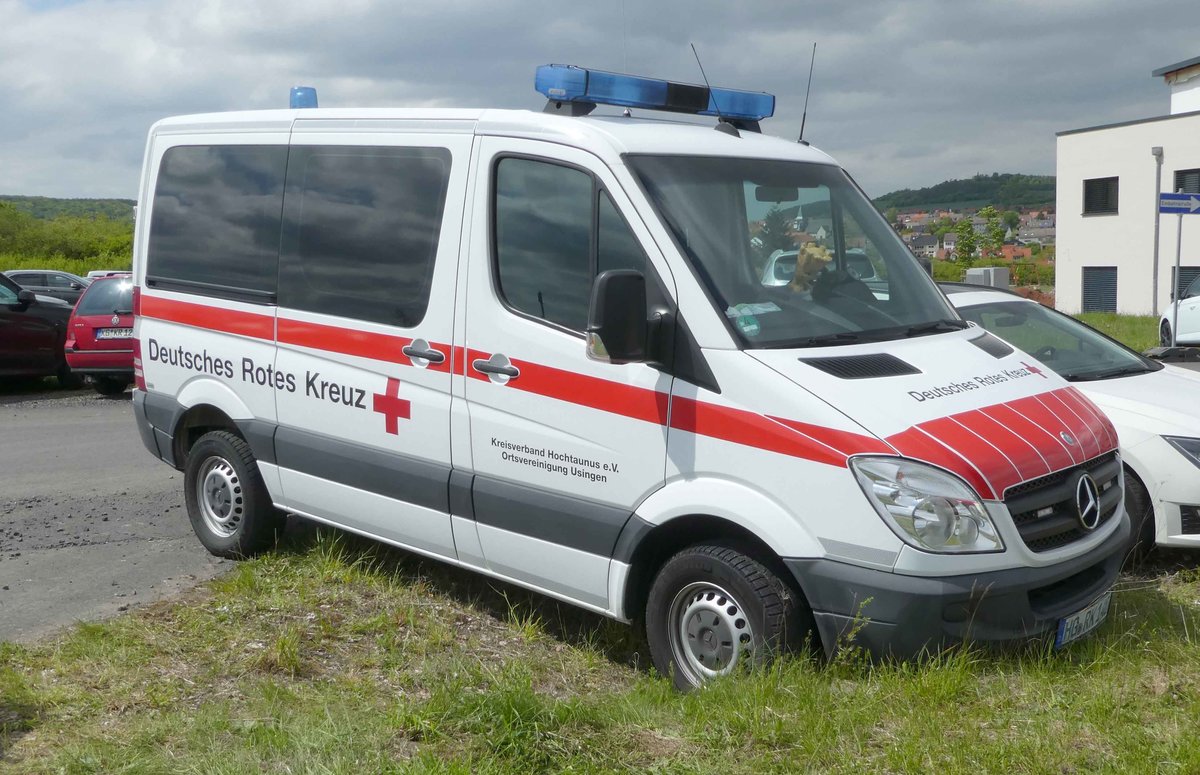 =MB Sprinter vom DRK KV Hochtaunus OV USINGEN, abgestellt auf dem Besucherparkplatz der Rettmobil 2019 in Fulda, 05-2019
