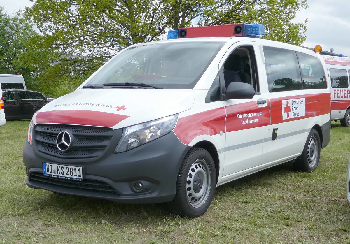 =MB Vito vom DRK als Katastrophenschutzfahrzeug Land Hessen, steht auf dem Besucherparkplatz der Rettmobil 2019 in Fulda, 05-2019
