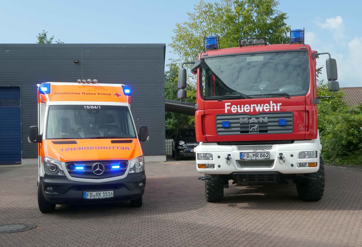 =MB Sprinter Rettungswagen des DRK und MAN TGM Gerätewagen Logistik der Feuerwehr HÜNFELD, 07-2019