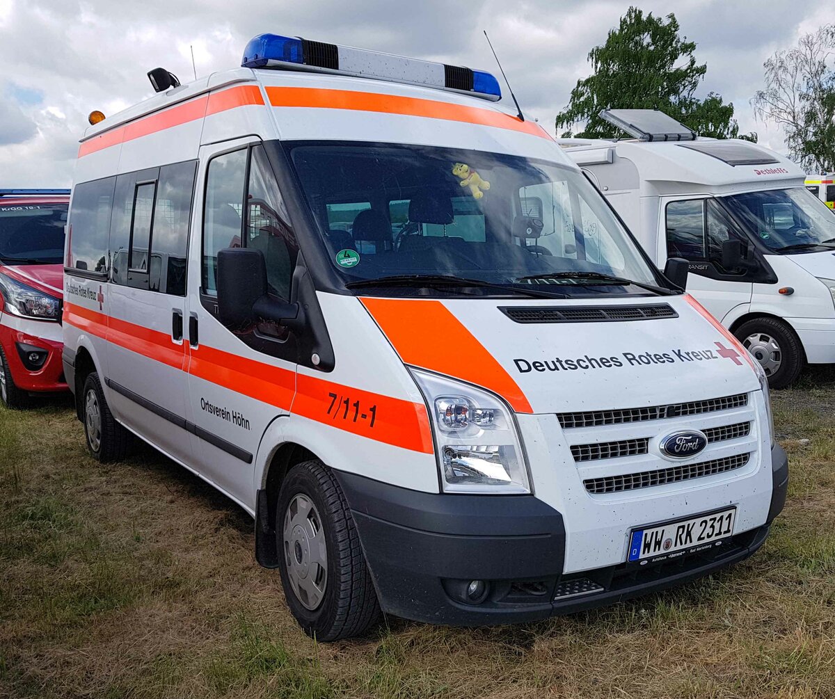 =Ford Transit vom DRK OV HÖHN steht auf dem Parkplatz der RettMobil 2022 in Fulda, 05-2022