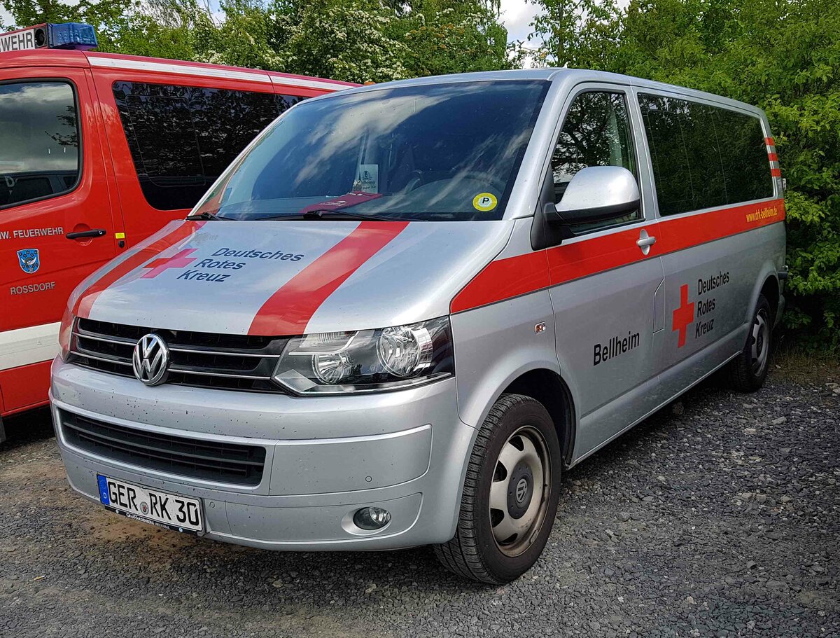=VW T5 des DRK OV BELLHEIM abgestellt auf dem Parkplatzgelände der RettMobil 2022 in Fulda, 05-2022