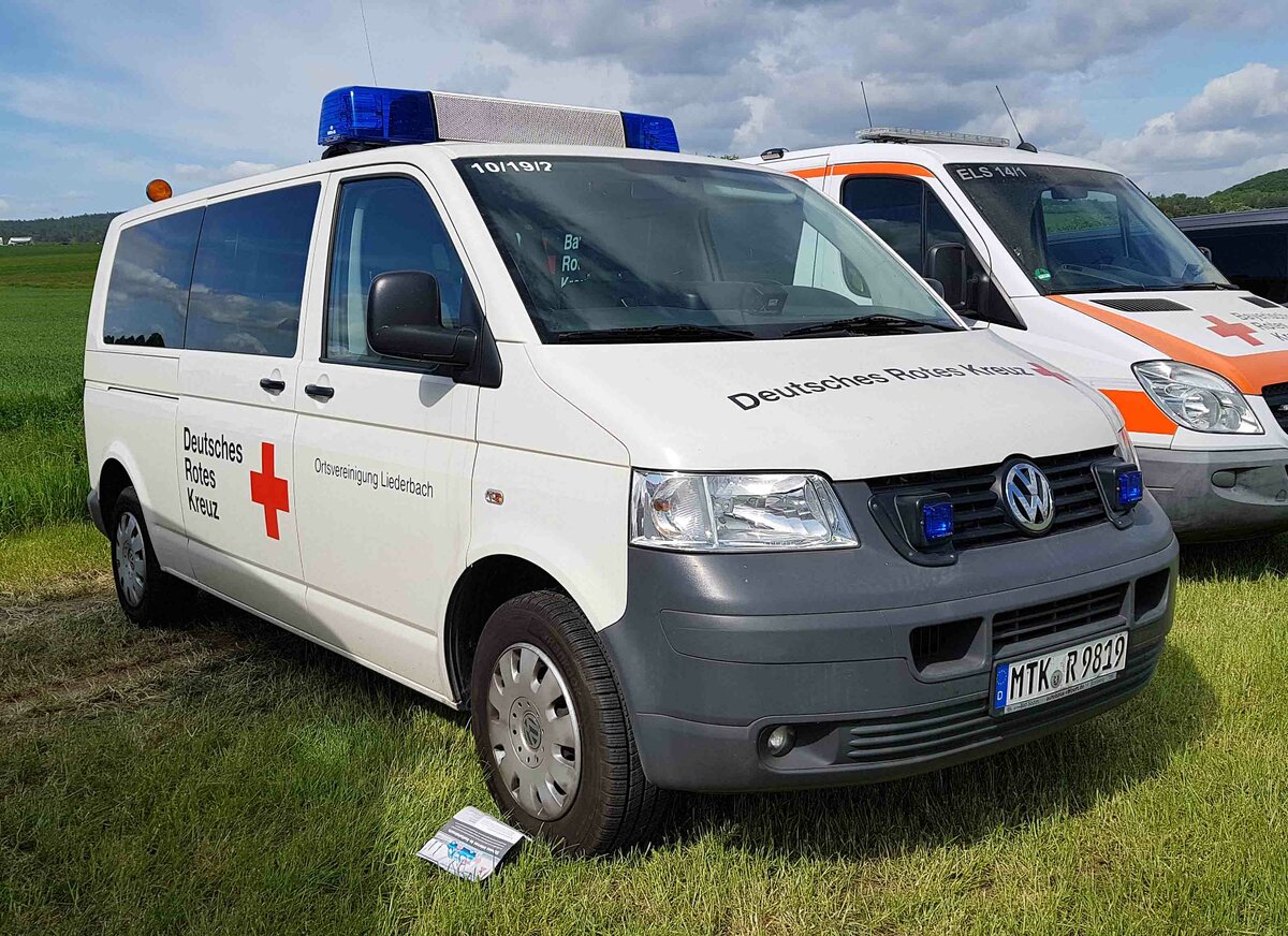 =VW T5 des DRK OV LIEDERBACH steht im Mai 2022 auf dem Parkgelände der RettMobil