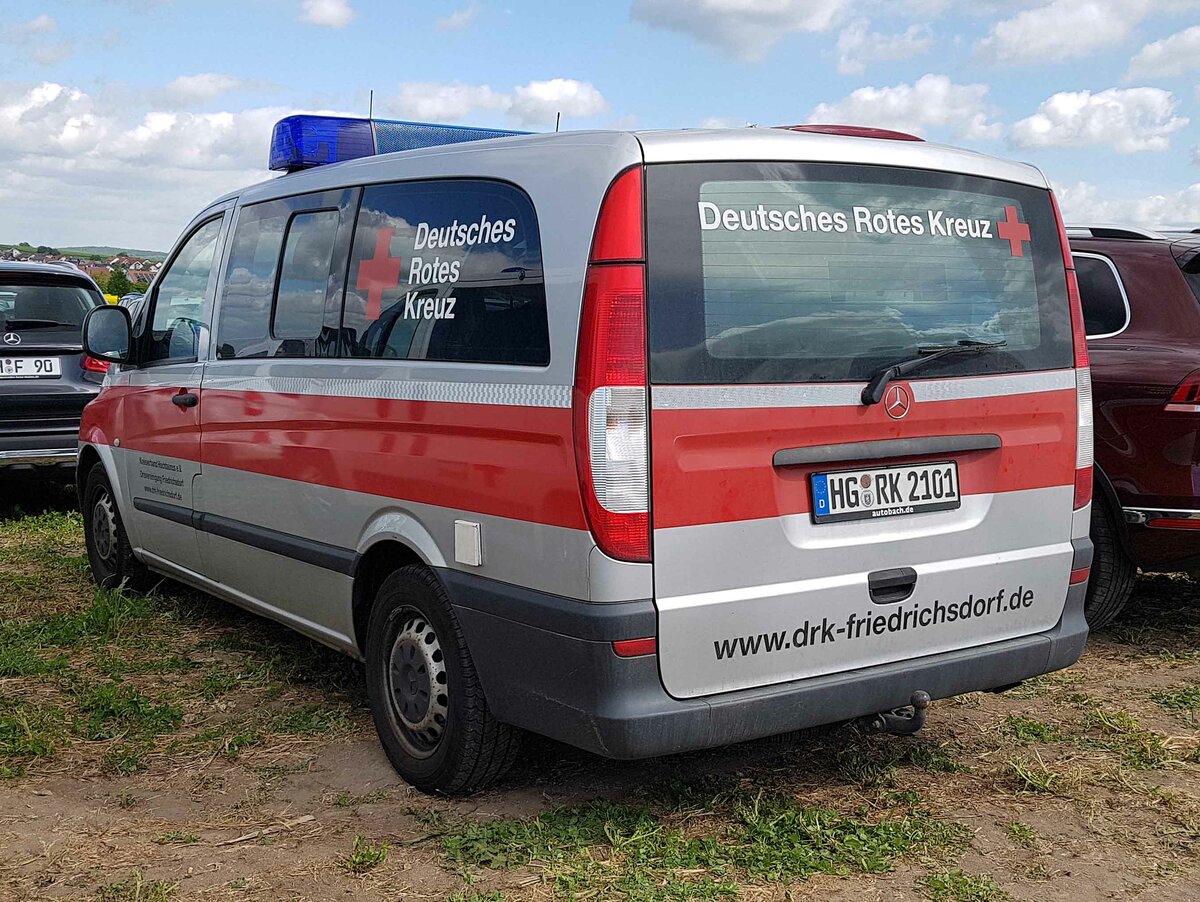 =MB Vito vom DRK FRIEDRICHSDORF steht auf dem Parkplatz der RettMobil im Mai 2022