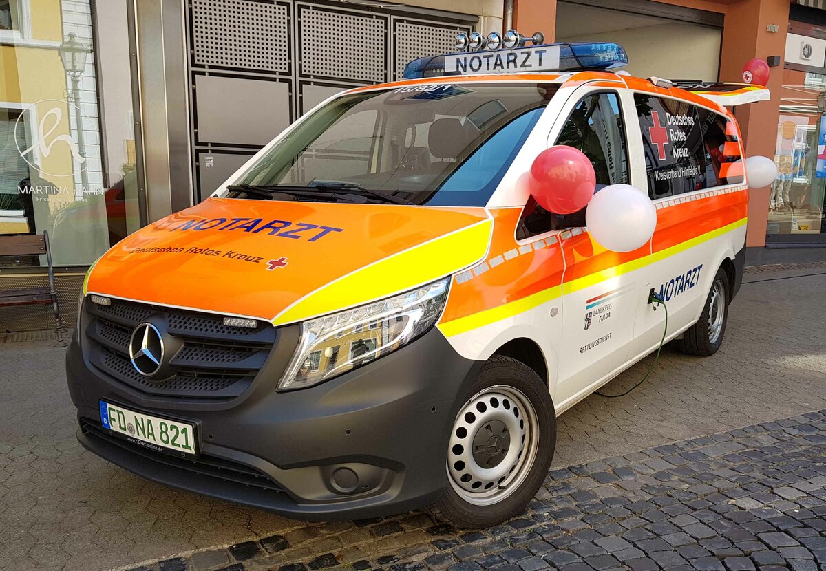 =MB Vito als NEF vom DRK KV HÜNFELD, gesehen beim Tag des Blaulichts 2023 in Hünfeld. Zum ersten Hünfelder Tag des Blaulichts, am 17.06.2023, präsentierten DRK, THW, LaPo Hessen, Feuerwehr Hünfeld, DLRG, die Justiz und die Bundespolizei einen Teil ihrer Einsatzmittel und warben für ihre Einrichtungen.