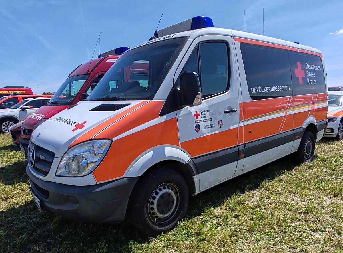 =MB Sprinter als Rettungsdienstfahrzeug des DRK KV HÜNFELD steht auf dem Ausstellungsgelände anl. der Feierlichkeiten  100 Jahre Feuerwehr HÜNFELD  im Juni 2025