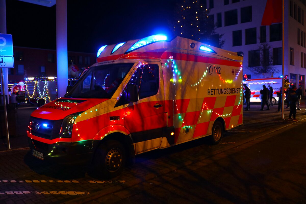 DRK Rettungsdienst Main Taunus Kreis VW Crafter RTW am 23.12.23 bei der Christmas Fire Truck Show in Kelkheim