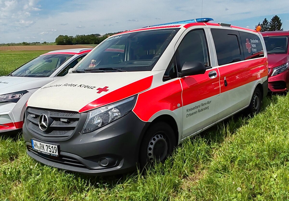 =MB Vito des DRK KV REMS-MURR OV RUDERSBERG steht im Mai 2024 auf dem Besucherparkplatz der RettMobil in Fulda