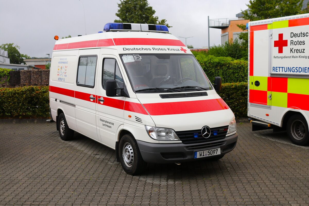 DRK OV Langenselbold Mercedes Benz Sprinter KTW (RK Main Kinzig 17-85-2) am 18.08.24 beim Tag der offenen Tür der Feuerwehr Langenselbold