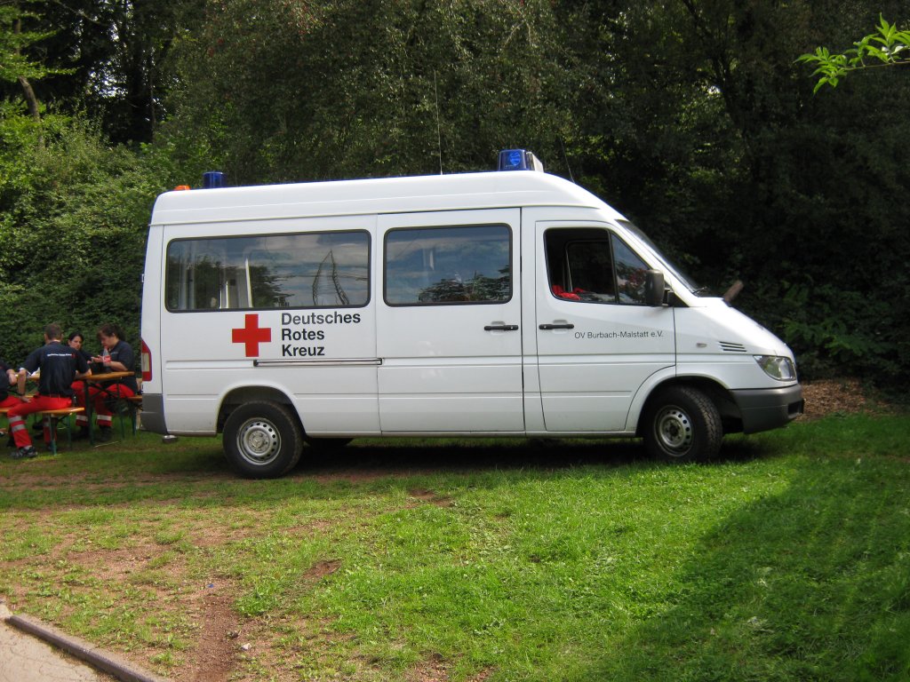 Hier ist ein Mercedes Transporter des Deutschen Roten Kreuz Ortsverein Malstatt Burbach zu sehen. Die Aufnahme des Foto war am 12.09.2010 beim Tag der offenen Tür des Saarbrücker Zoo in der Landeshauptstadt Saarbrücken.