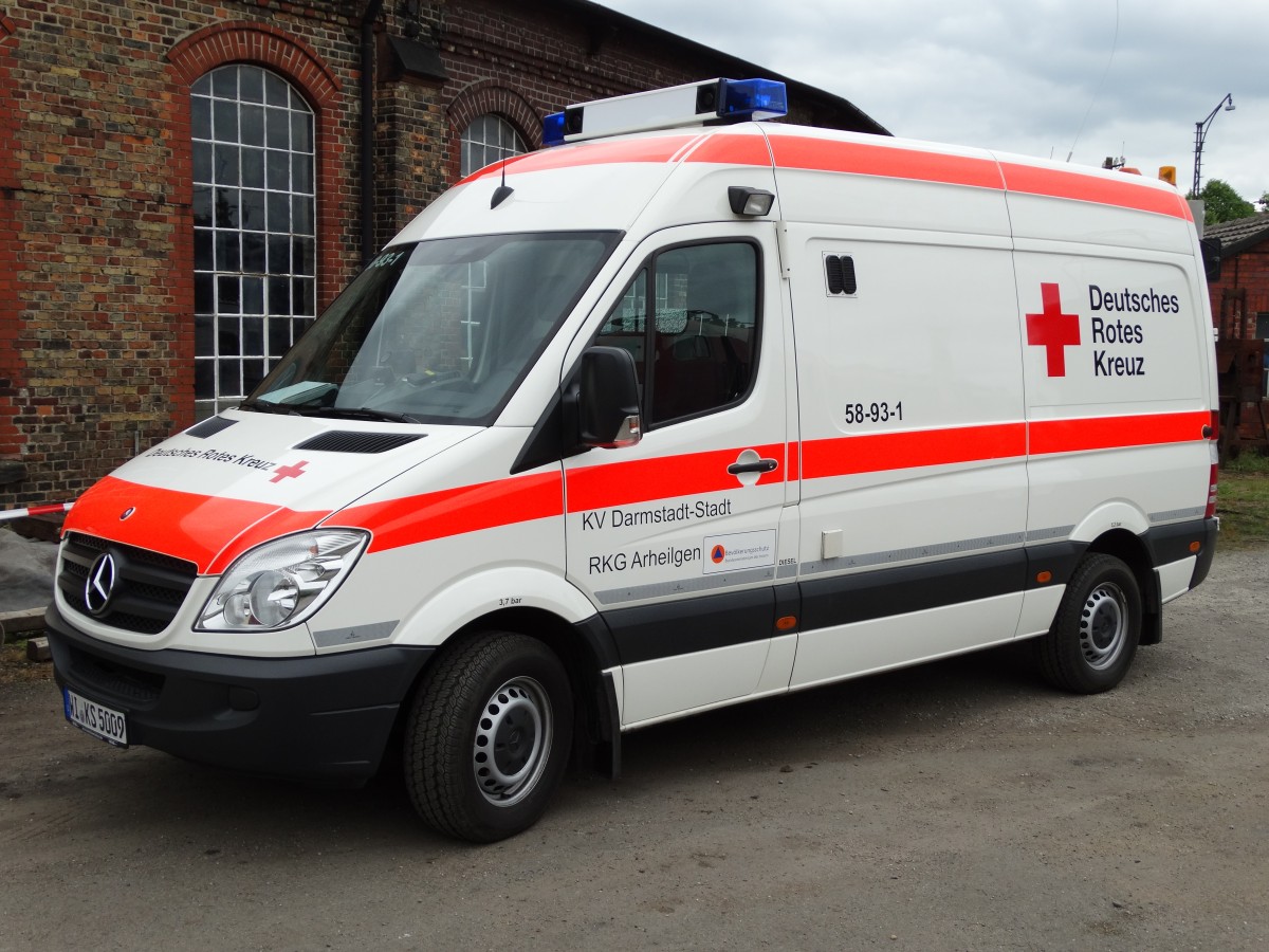 Mercedes Benz Sprinter RTW des DRK am 30.05.14 bei den Bahnwelttagen in Darmstadt Kranichstein