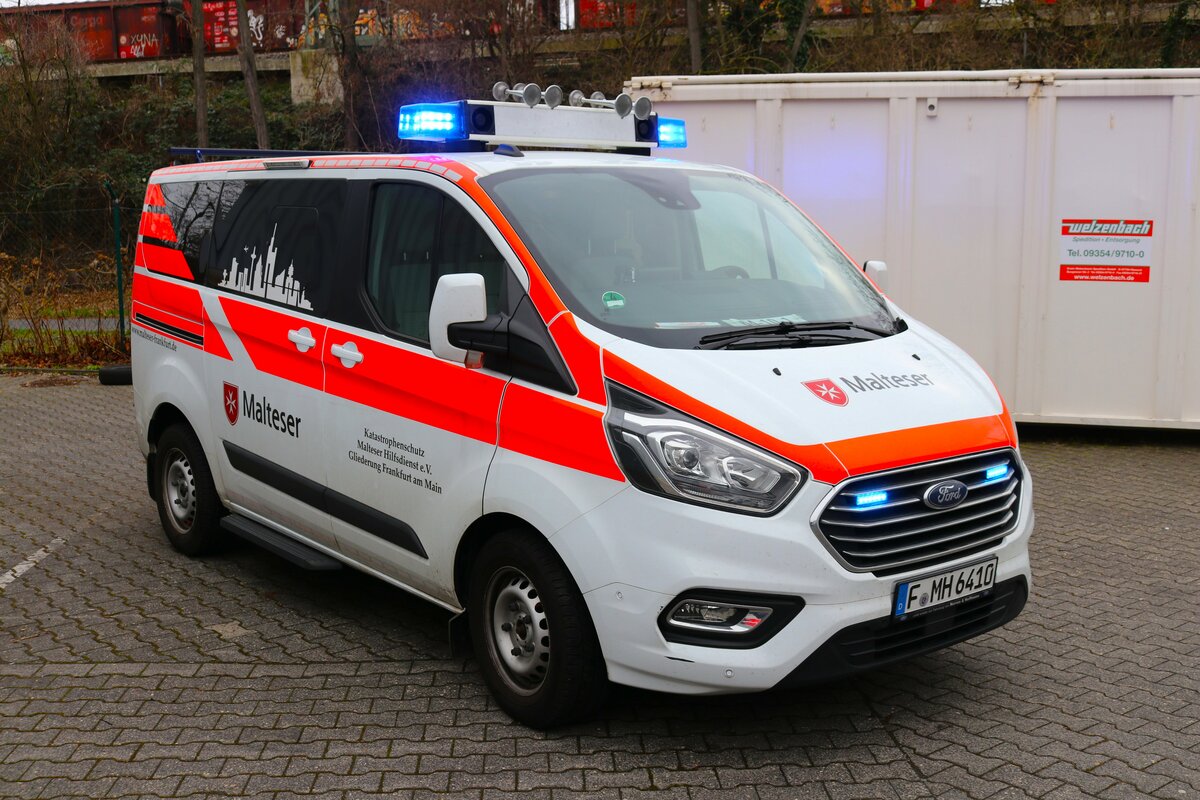 Malteser Frankfurt am Main Ford Transit KdoW (Johannes Frankfurt 64-10-1) am 17.02.24 bei einen Fototermin. Danke für das tolle Shooting